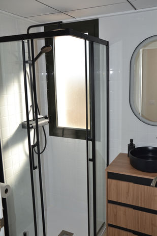 In de woonkamer treft u een riante bank, een fauteuil en twee zitkrukjes. Een nieuwe smart TV zorgt voor entertainment. De woonkamer is voorzien van airconditioning en een radiator. Beneden de woonkamer bevindt zich een loungehoek met een eettafel waar een groep binnen kan eten. Wifi is beschikbaar in het hele appartement. Een wasmachine is aanwezig.